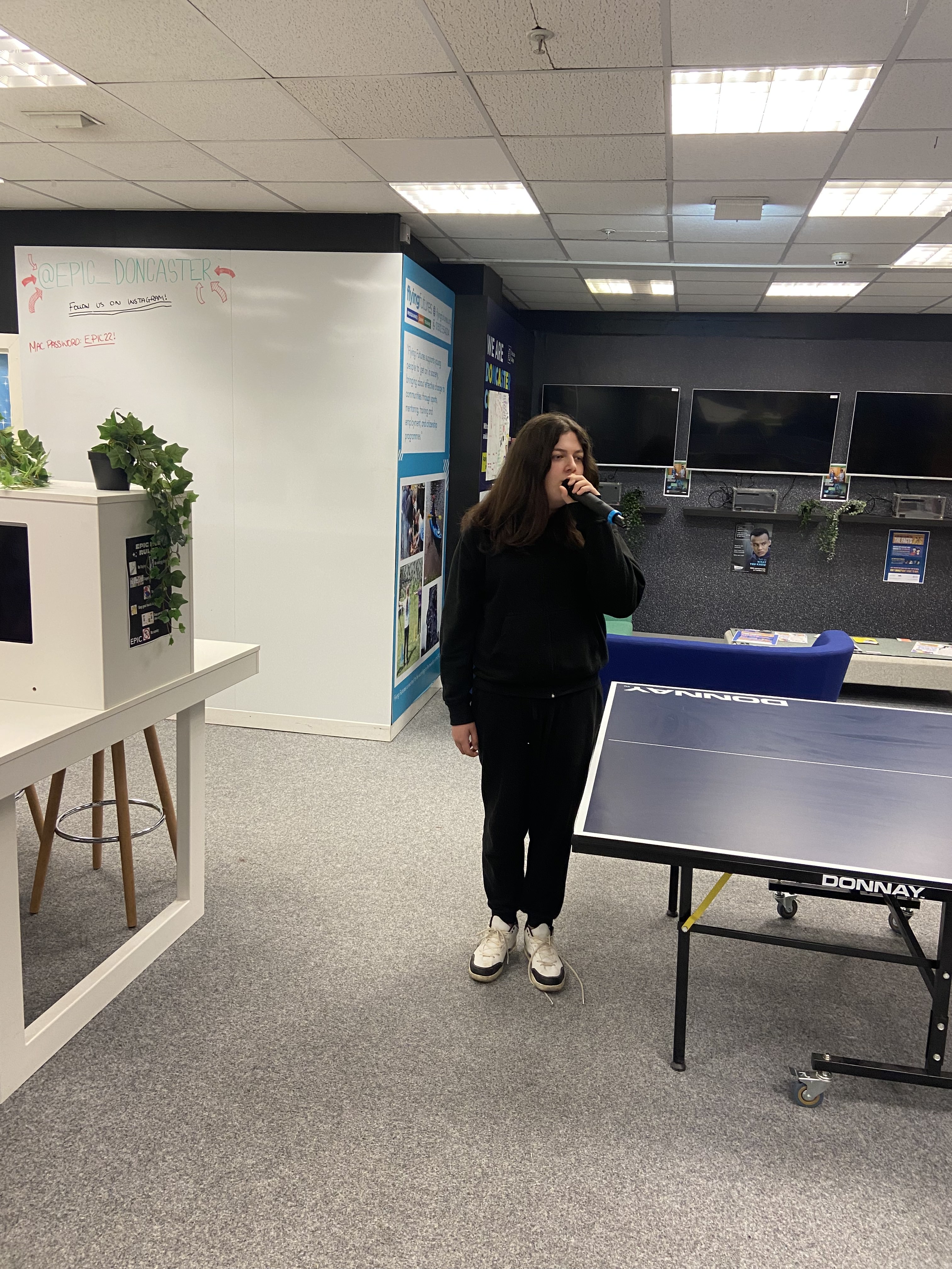 Our engagement at the Epic Hub in Doncaster marked the second instalment of our Fast Trax workshops, aptly named ‘Open Mic’. Tailored for youths aged 12 to 17, these dynamic sessions spanned three hours and were hosted weekly at Epic Doncaster’s hub in the Frenchgate Centre starting on May 15th, 2023, and concluding at the end of January 2024. Witnessing enthusiastic participation from sizable cohorts, our primary objectives were multifaceted. Beyond merely providing access to recording equipment, we aimed to nurture the creative talents of young individuals who might otherwise encounter barriers to such resources. Throughout the project, we facilitated the development of their songwriting and vocal performance skills, with the ultimate goal of producing a recorded track by the end of each session.